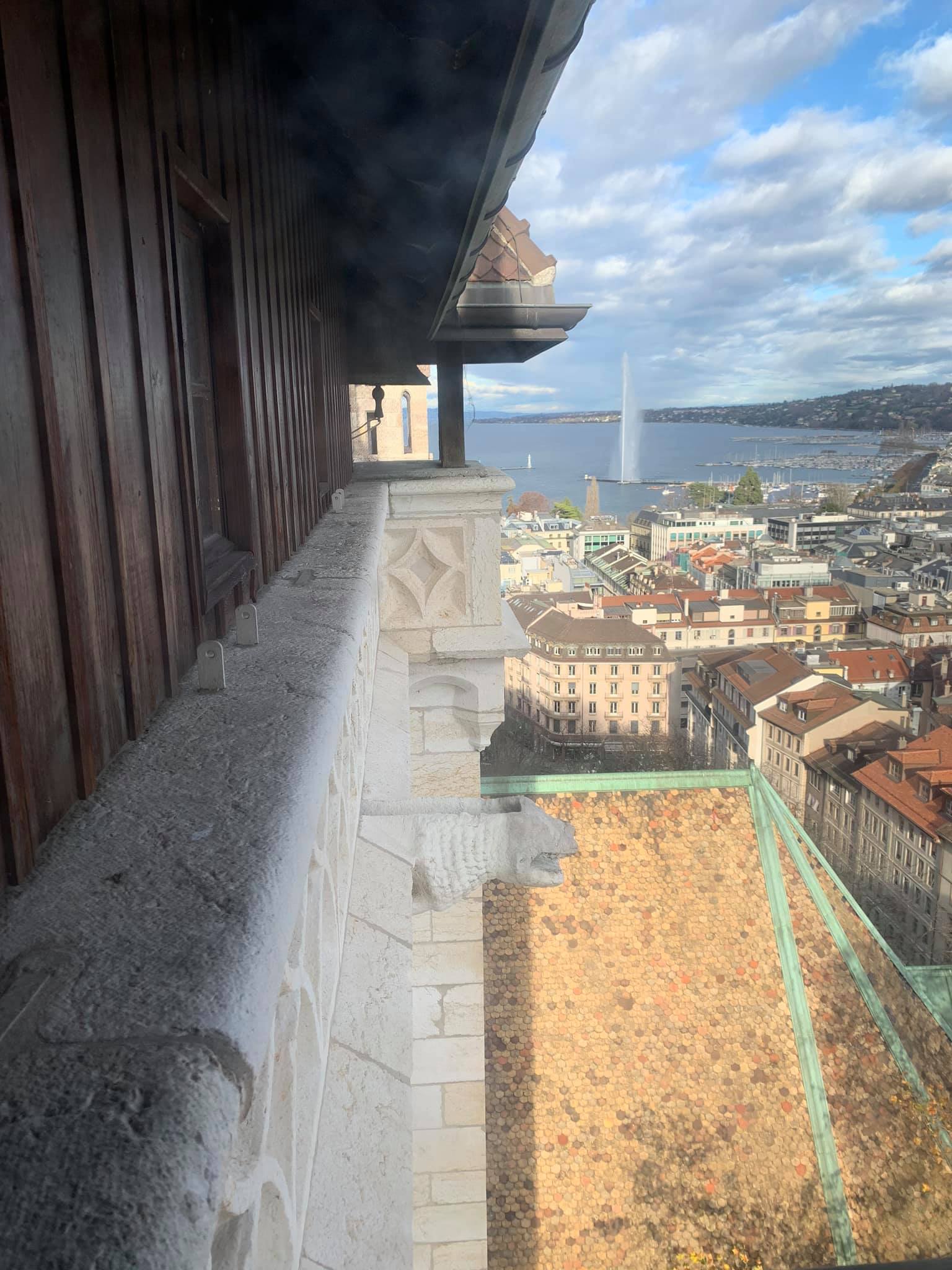 Geneva and the Jet D-eau as seen from the watch tower.