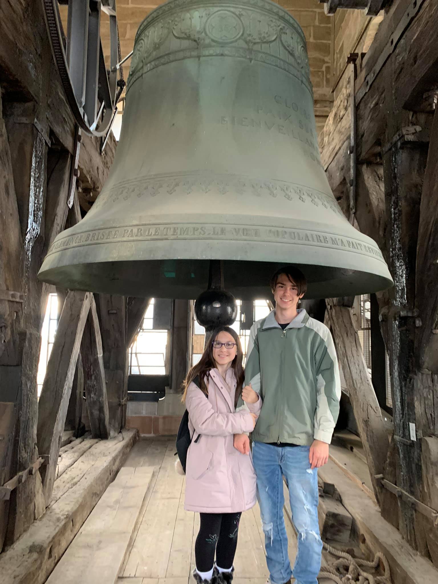 MIles and Maizy under the bell